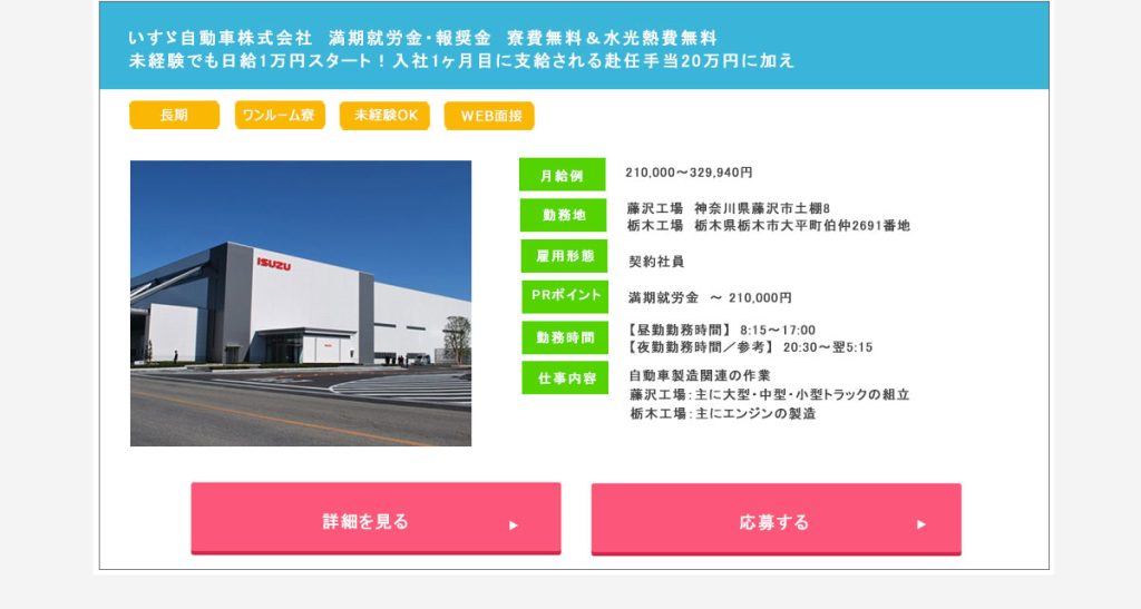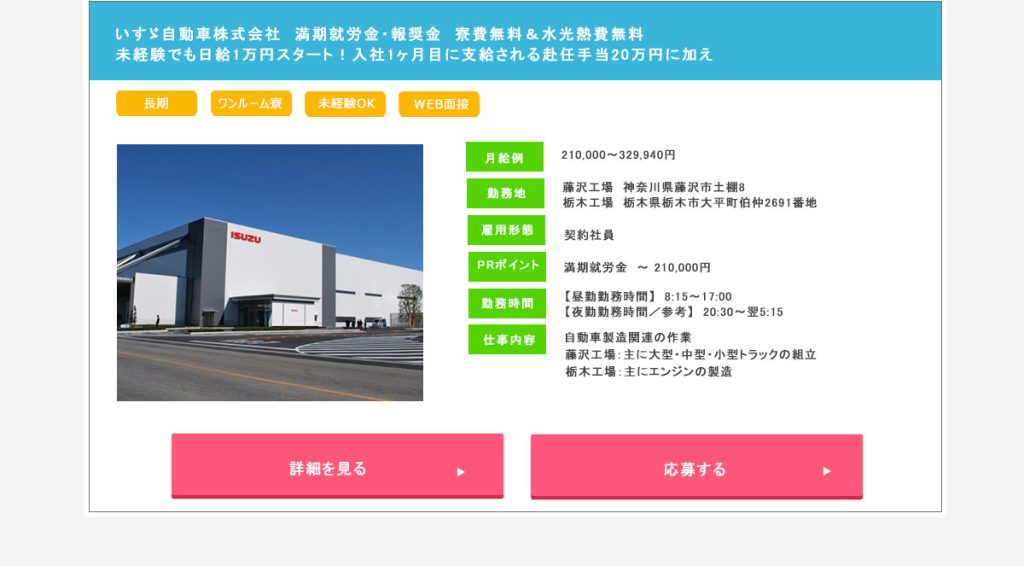 6か月ごとの契約更新あり(期間工ではないため最長契約期間は設けていません)